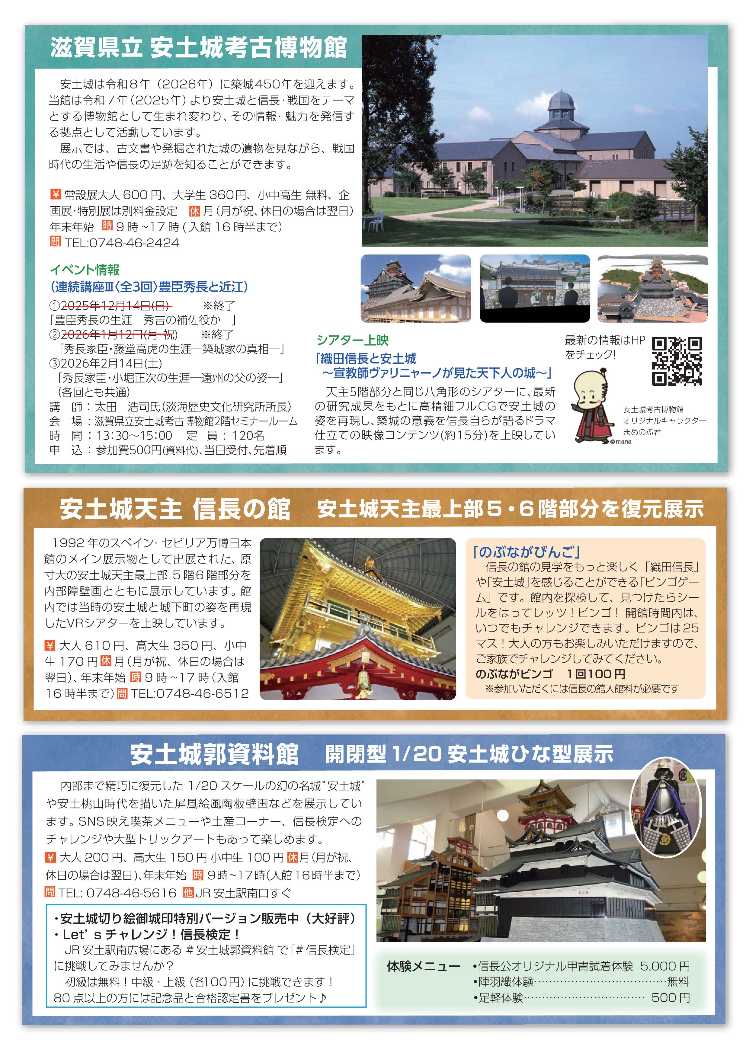 | 11 | 8 | 土 | 出張!お城エキスポin滋賀・びわ湖2025(外部サイト,別ウィンドウで開く) | 安土文芸の郷 | 滋賀県 |