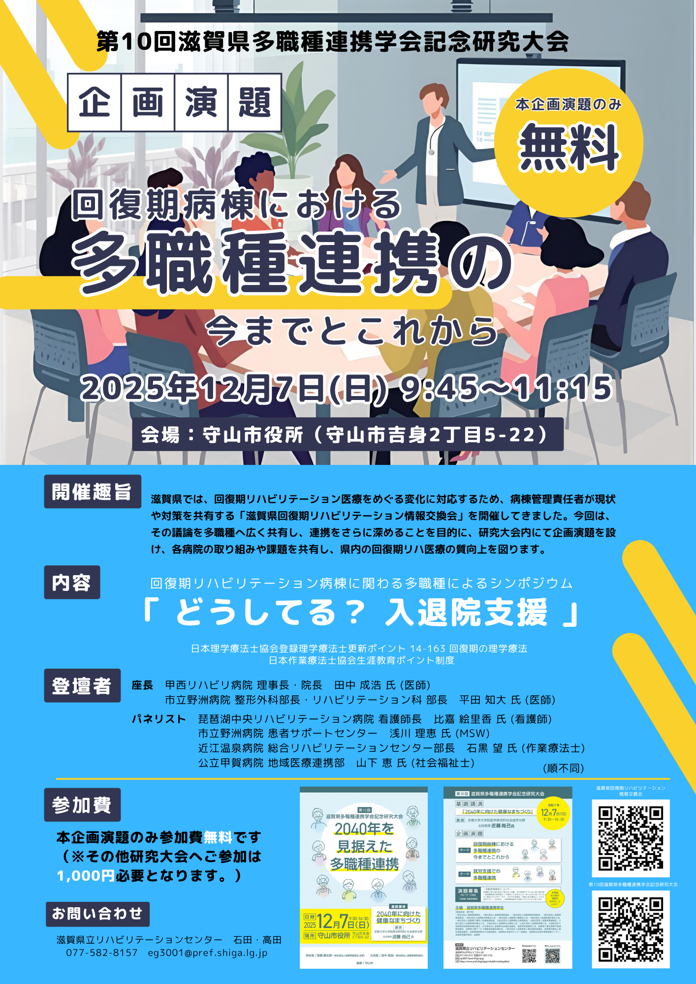 場所:琵琶湖中央リハビリテーション病院 5階地域研修センター(及びZoomを用いたオンライン形式)