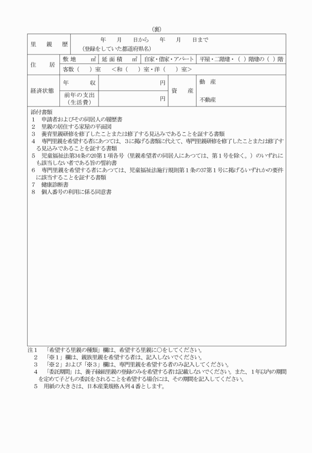 (助産施設入所申込書および母子生活支援施設入所申込書)