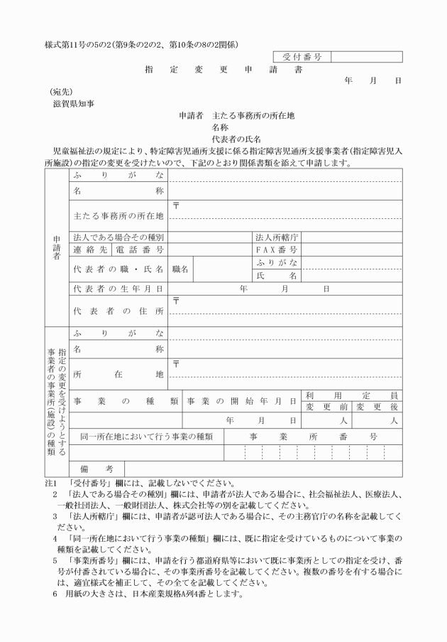 第5条 施行規則第7条の9第3項の届出書は、小児慢性特定疾病医療受給者証等記載事項変更届出書(別記様式第6号)とする。