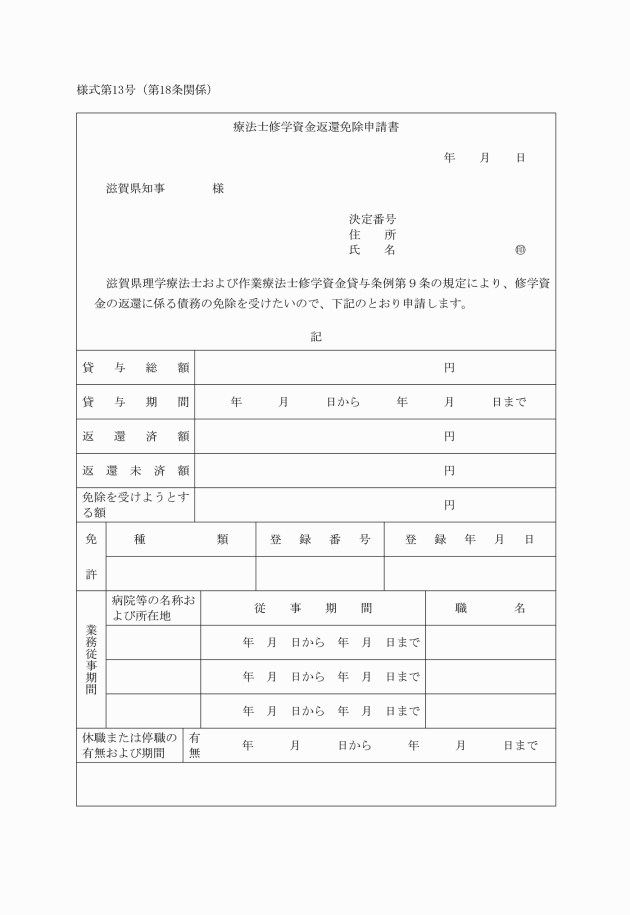滋賀県理学療法士および作業療法士修学資金貸与条例施行規則