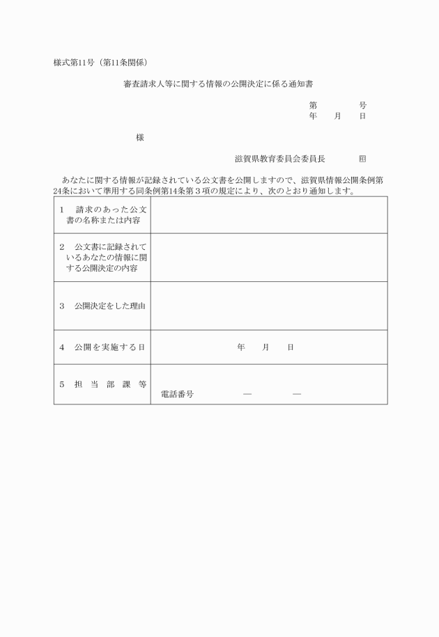 滋賀県教育委員会が行う情報公開に関する規則をここに公布する。