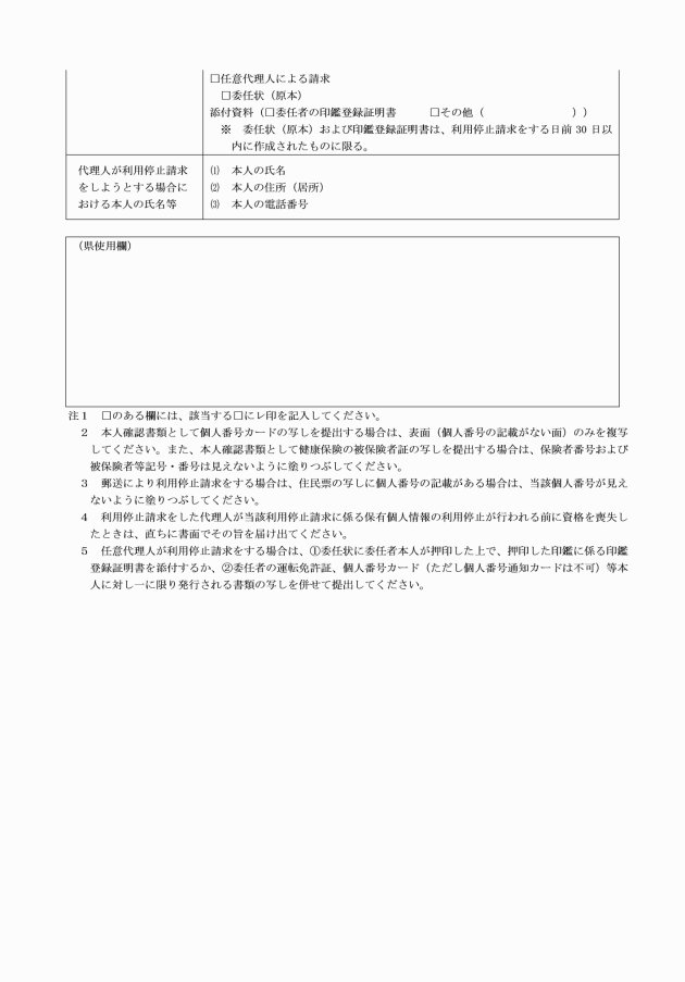 (利用停止請求書)